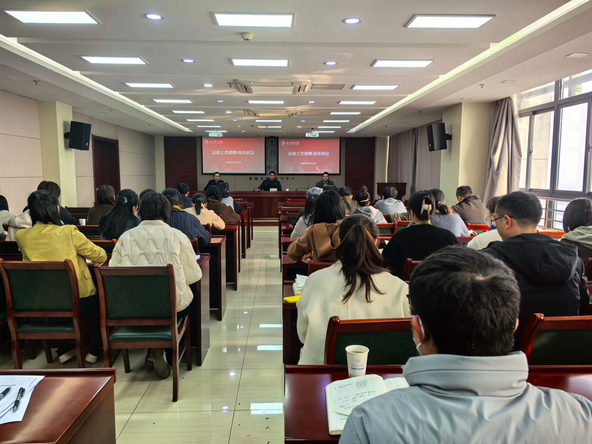 学校注重法治教育的实用性与长效性,致力于将知识转化为解决问题的能力,并提供坚实保障。精准答疑,普法到身边。针对学生关注的求职就业、防范诈骗、网络言行等热点,邀请法官和法治辅导员深入学生社区,开展多场“面对面”法律咨询服务。通过以案释法,剖析风险、传授方法与途径,使法治教育成为学生身边的“法律顾问”。专家上门,服务再延伸。学校法律顾问带领律所团队成员到有关单位部门,针对重要法律风险防控、法律问题处理,开展面对面“法律问诊”,提供定制化解决方案,将专业服务延伸至管理服务一线。队伍赋能,专业促发展。12月11日,连续第二年举办法治工作联络员系列培训,聚焦校园常见法律风险防控、权益保障等实务,邀请学校法律顾问等授课,强化了联络员的风险意识,提升了专业能力。